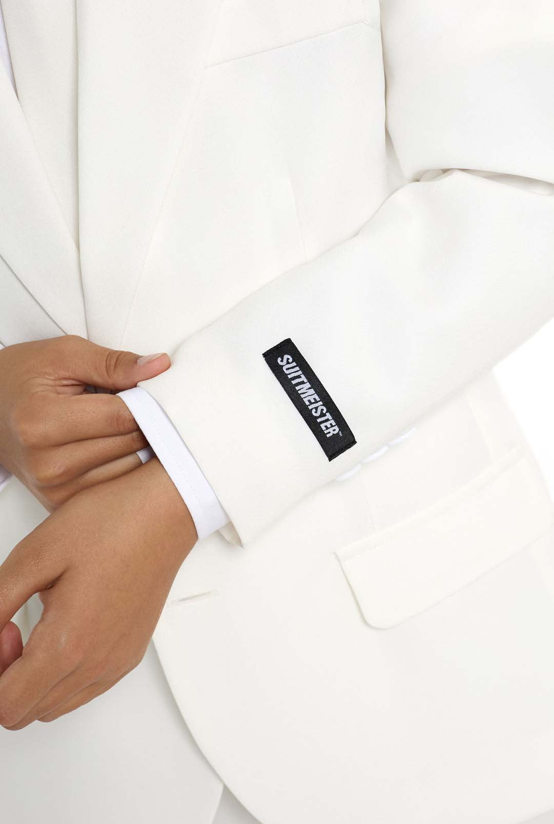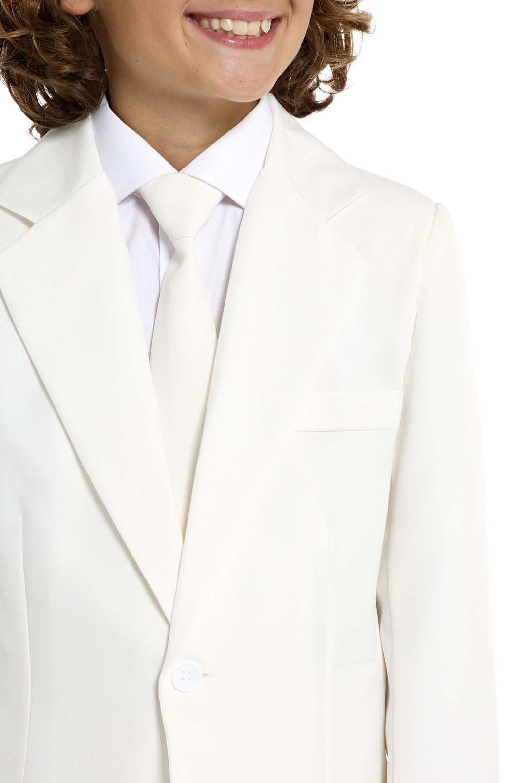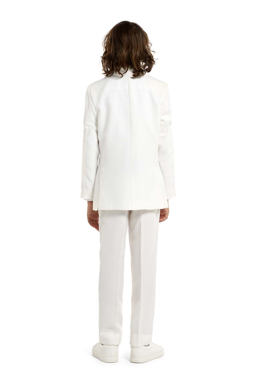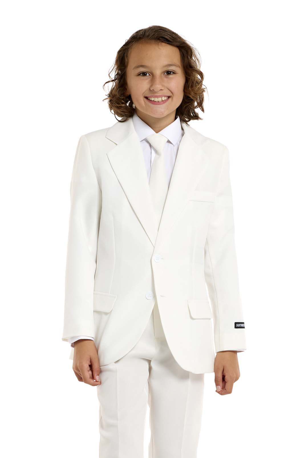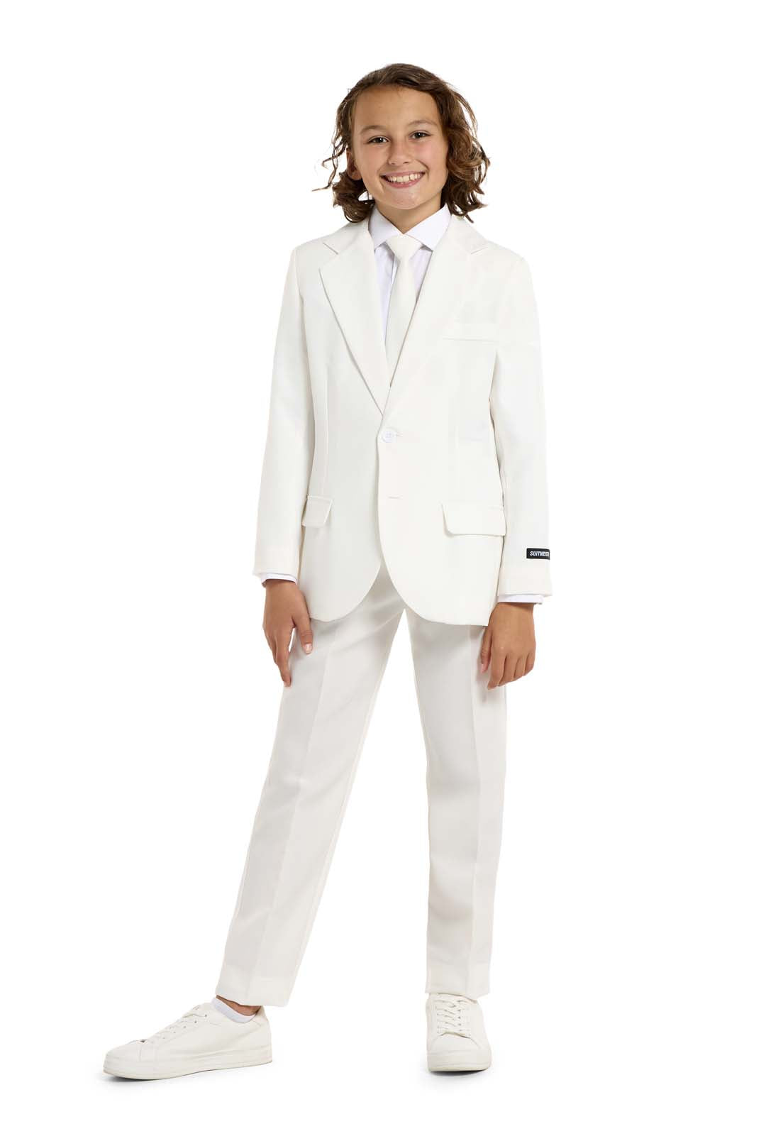 Machen Sie mit diesem komplett weißen Kinderanzug einen frischen und sauberen Eindruck; eine stilvolle und frische Alternative für Partys.