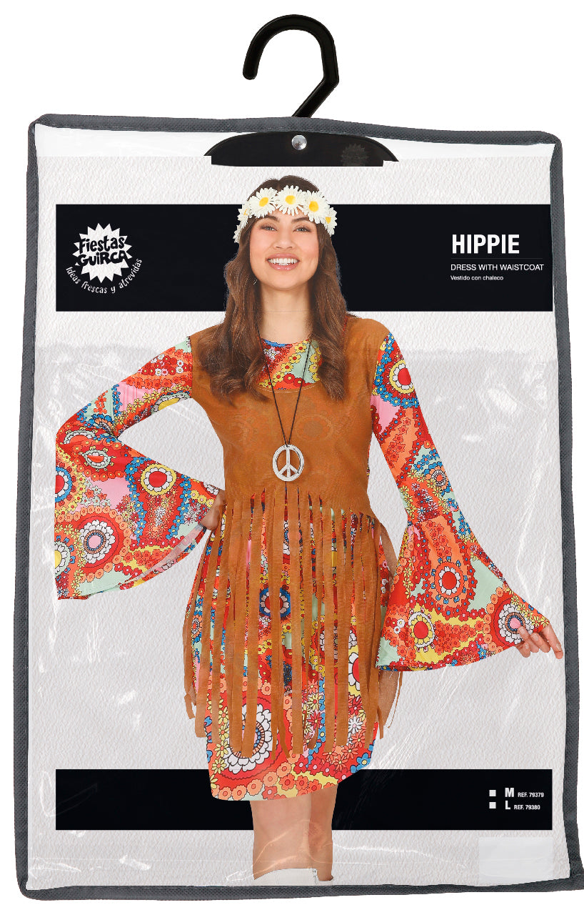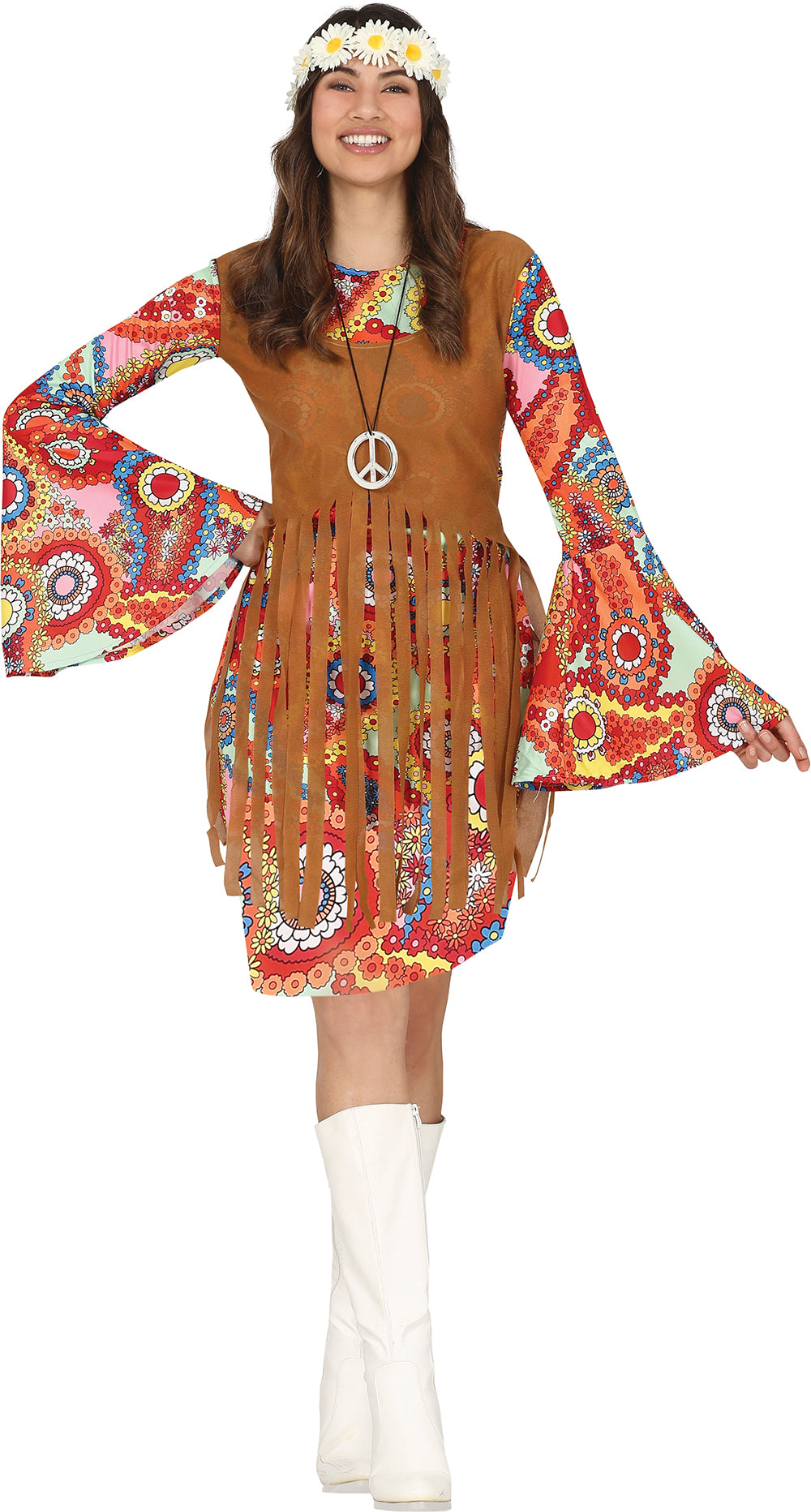 Dieses Hippie-Kleid im 60er-Jahre-Stil für Damen entführt Sie in die farbenfrohe und unbeschwerte Zeit der 1960er-Jahre. Perfekt für Mottopartys, Karneval oder Festivals.