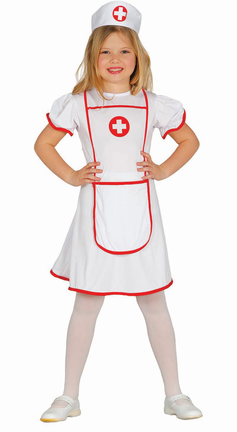 Met dit Verpleegster Kostuum voor kinderen kan je kleine zorgheld(in) in stijl hulp verlenen tijdens verkleedpartijen, carnaval of toneel.