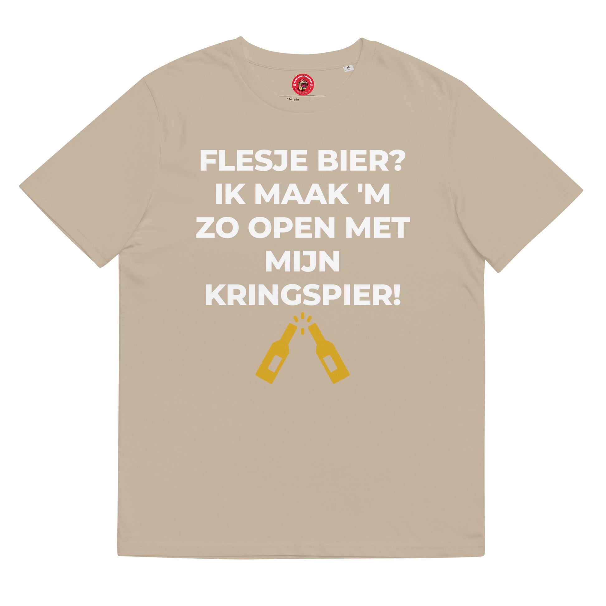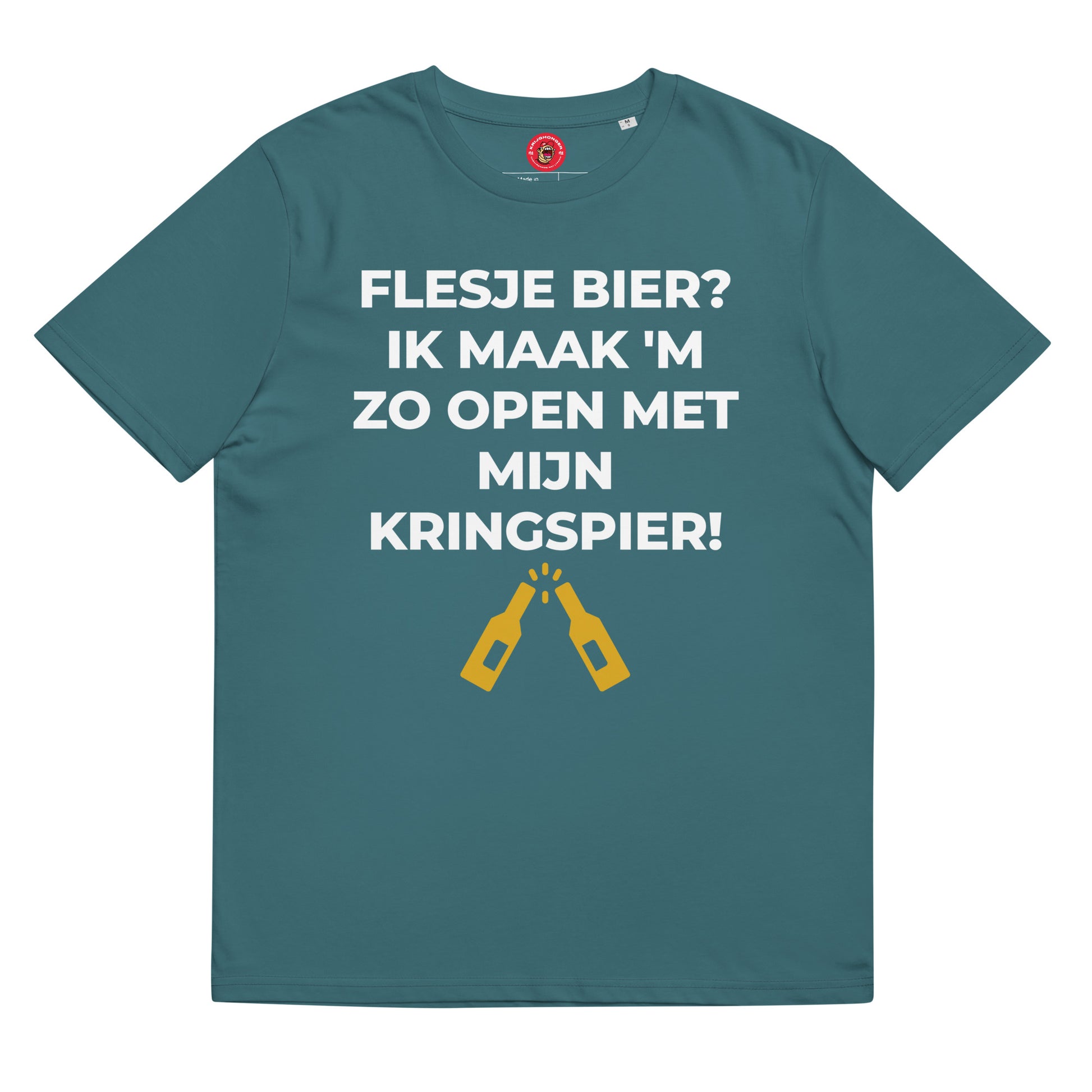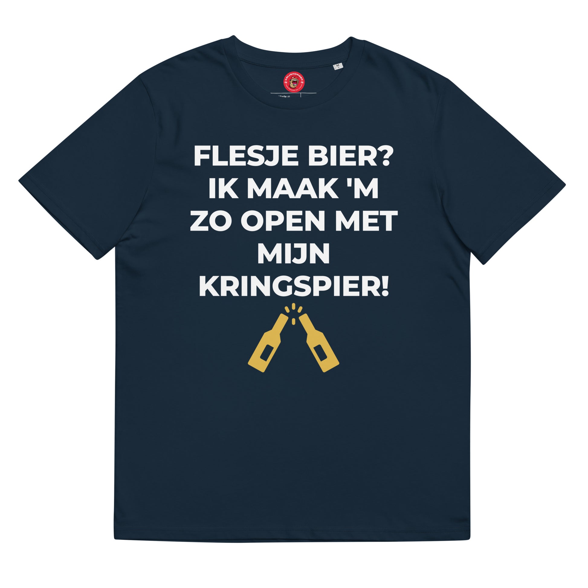 Flesje Bier? Ik Maak 'M Zo Open Met Mijn Kringspier T-shirt, gemaakt van 100% biologisch (cock)ringgesponnen katoen, is een echte must have. Het is van hoogwaardige kwaliteit, super comfortabel en het beste van alles: milieuvriendelijk.