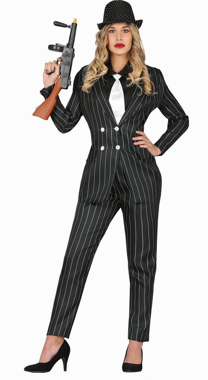 Word de koningin van de onderwereld met dit stoere gangster kostuum voor dames. Deze outfit combineert de klassieke maffia-look met een vrouwelijke twist en is perfect voor carnaval, themafeesten of een jaren 20/30 gangsterparty. Met dit kostuum straal je power, stijl en een vleugje gevaar uit. 🖤