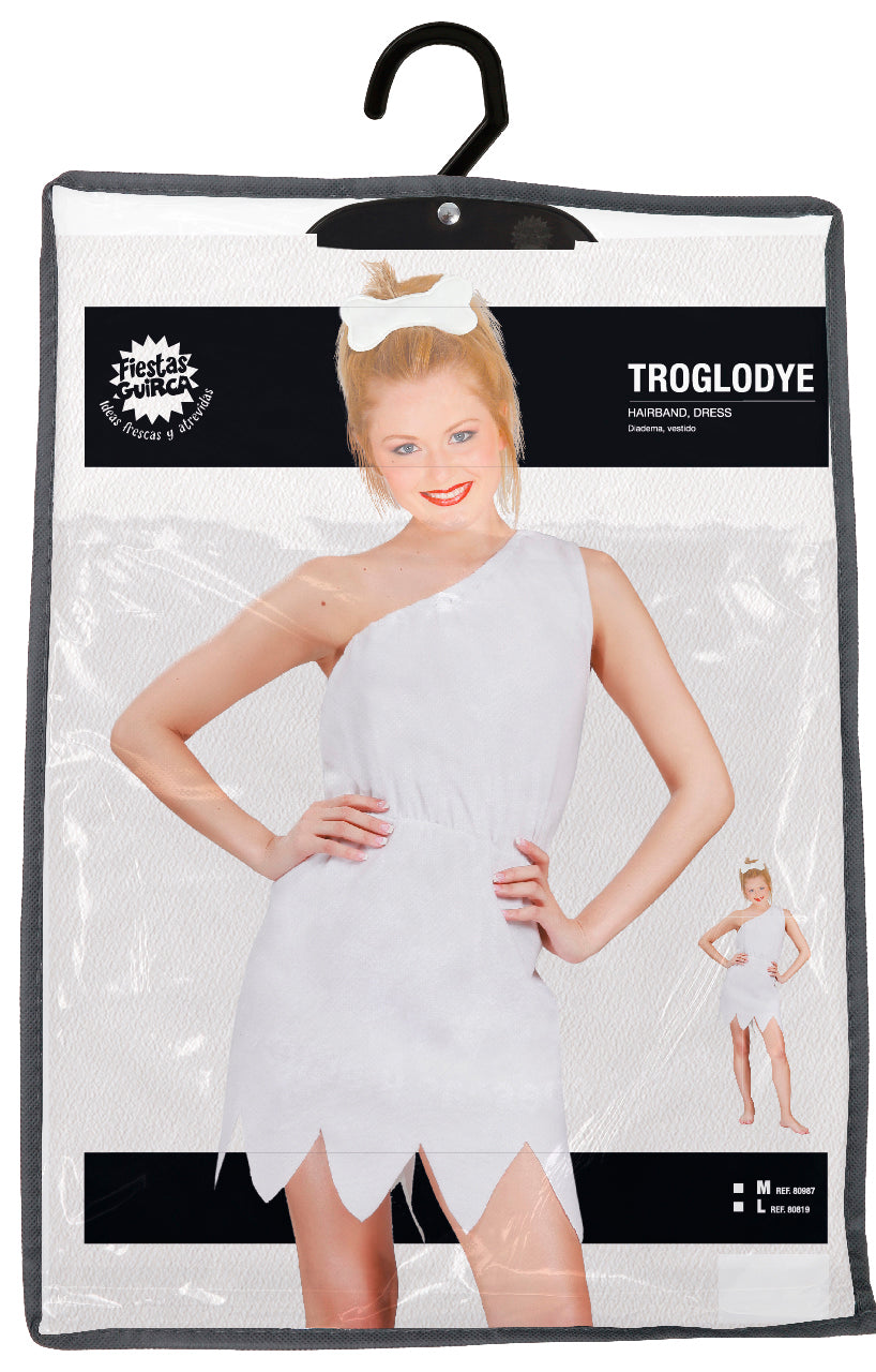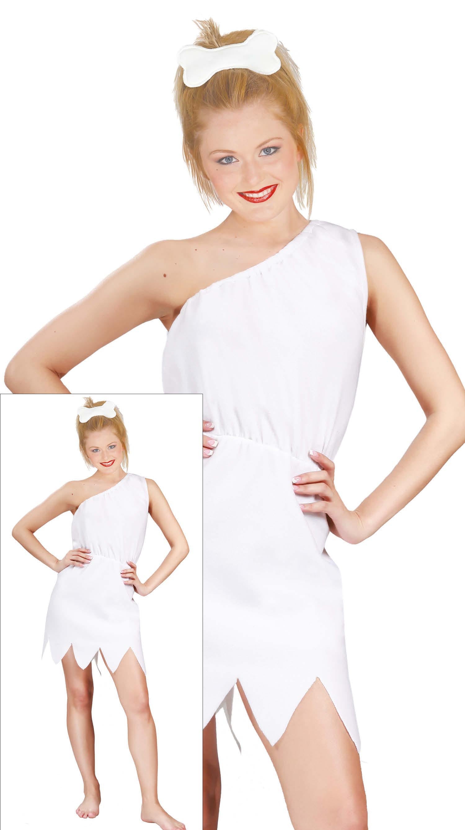 Ga stijlvol terug in de tijd met dit elegante holbewoner kostuum voor dames in wit. Deze frisse en speelse outfit is perfect voor carnaval, themafeesten en prehistorische verkleedavonden. Met de witte jurk en bijpassende haarband steel jij gegarandeerd de show in de steentijd. 🦴✨