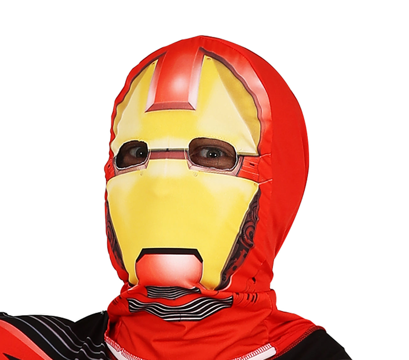 De jumpsuit heeft de herkenbare rood-gele kleurencombinatie, maar dan lekker overdreven en parodie-waardig. De kap maakt de look compleet: jij bent duidelijk geen Iron Man… maar wel de versie waar iedereen om moet lachen.