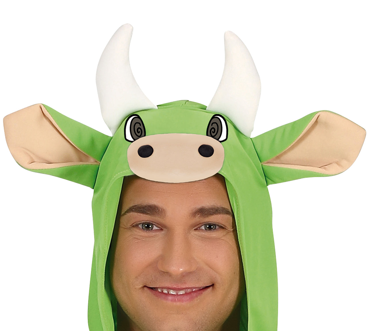 De jumpsuit heeft een capuchon met koeienkop, een all-over koeienprint en natuurlijk de beroemde “tap-uier”. Ideaal voor foute feesten, carnaval, après-ski, vrijgezellenfeesten of gewoon elk feestje waar iemand durft te vragen: “Wil er nog iemand een biertje?”