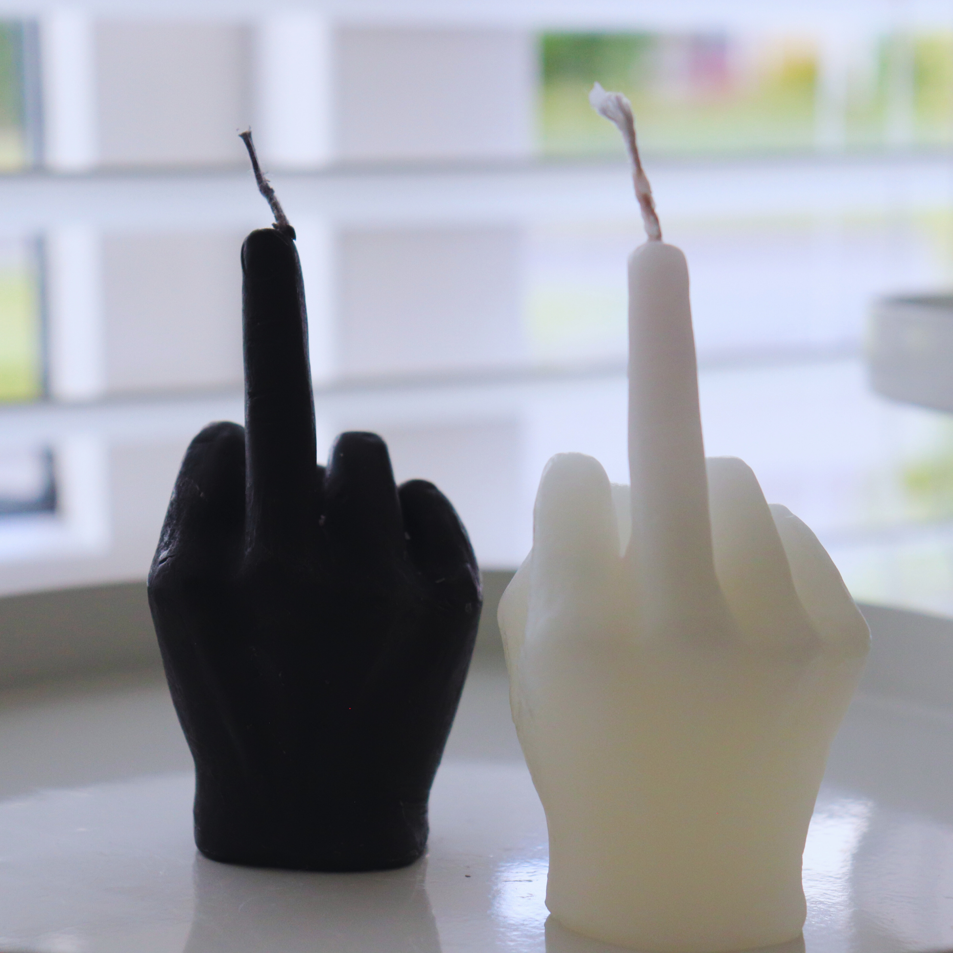 Maak kennis met deze unieke middelvinger kaars. Gezellig om op tafel te zetten en te branden of om in je kont te douwen!