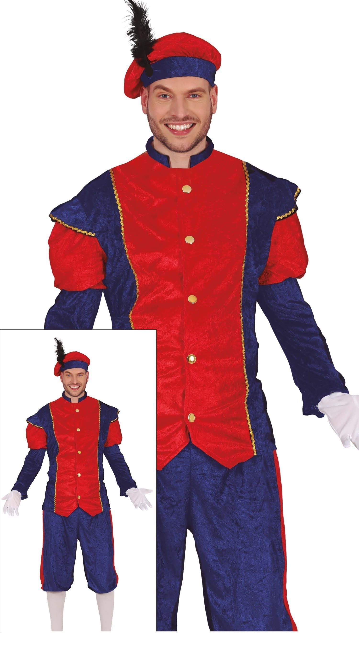 Met dit rood-blauwe Pietenpak voor heren stap je gelijk in de Sinterklaassfeer. De klassieke kleuren, comfortabele pasvorm en feestelijke details maken dit kostuum ideaal voor intochten, bedrijfsevents, scholen, familiefeesten en natuurlijk pakjesavond.