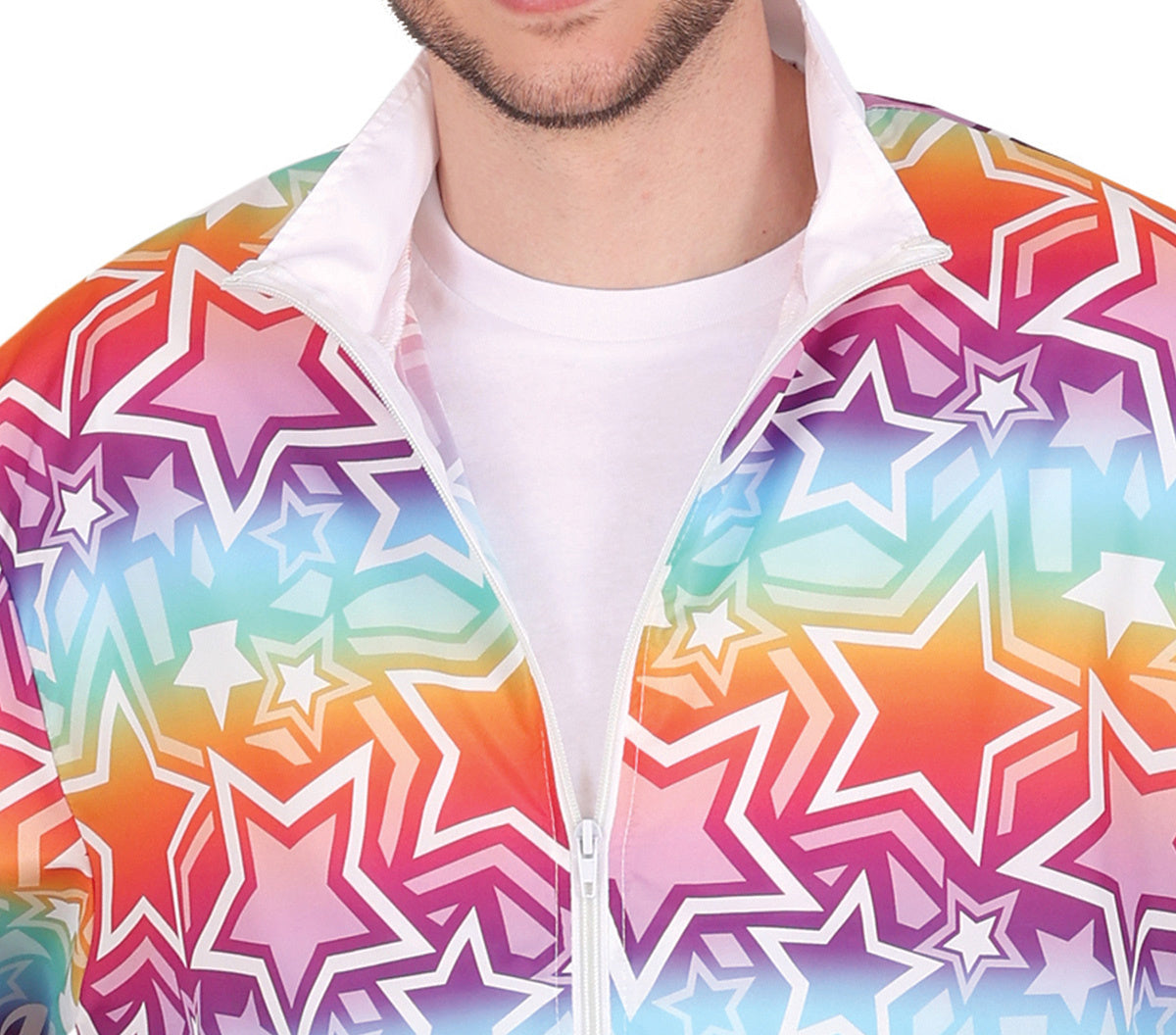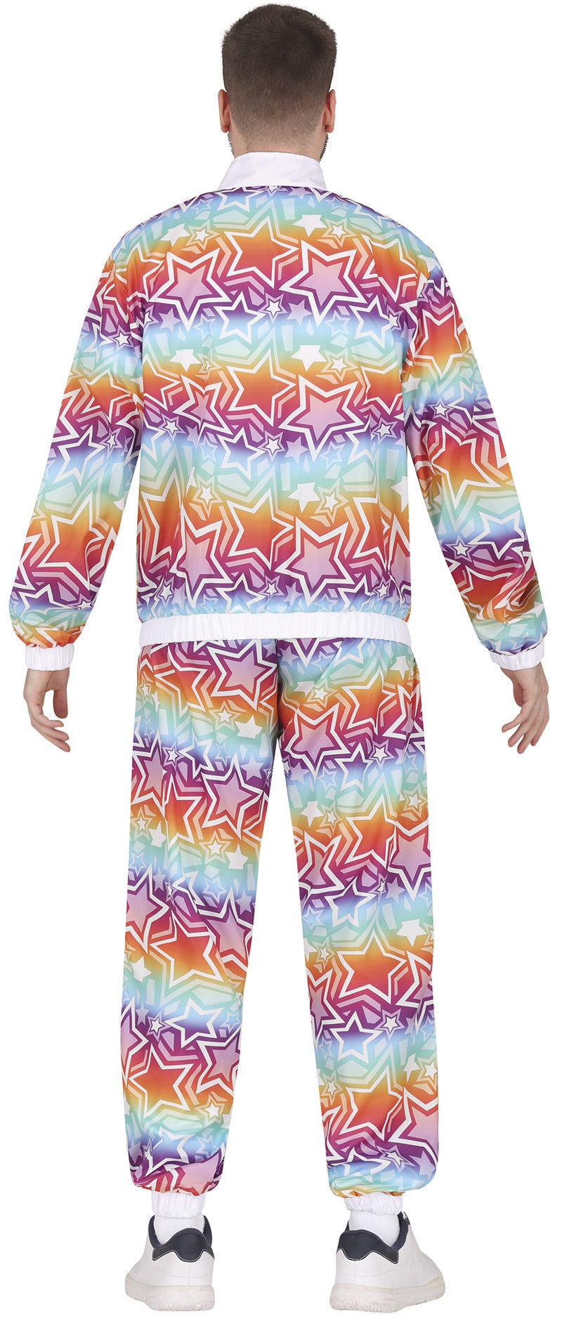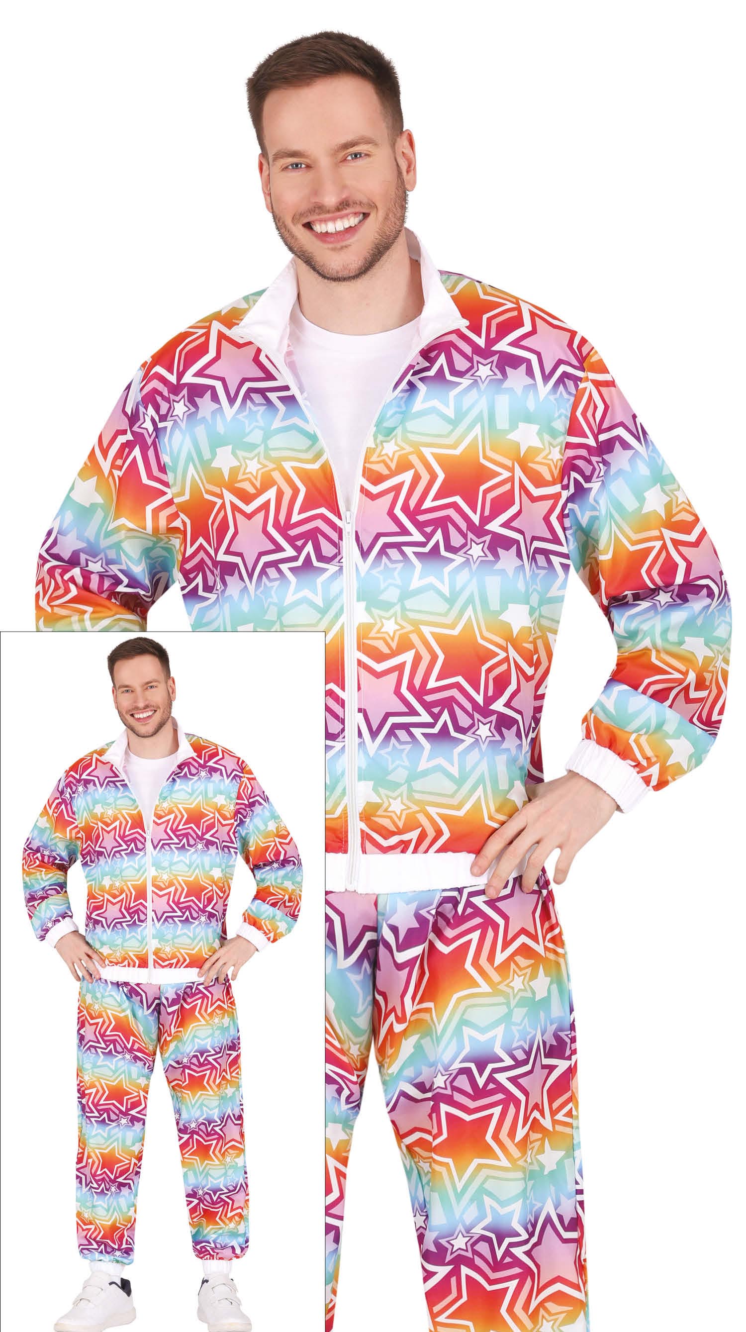 Straal letterlijk op elk feest met dit opvallende trainingspak voor heren met sterrenprint. Het veelkleurige design met speelse sterren maakt dit pak perfect voor carnaval, foute feesten, thema-avonden of een jaren 80/90 party waar je gezien wilt worden. Dit is geen outfit, dit is een statement. ✨🕺