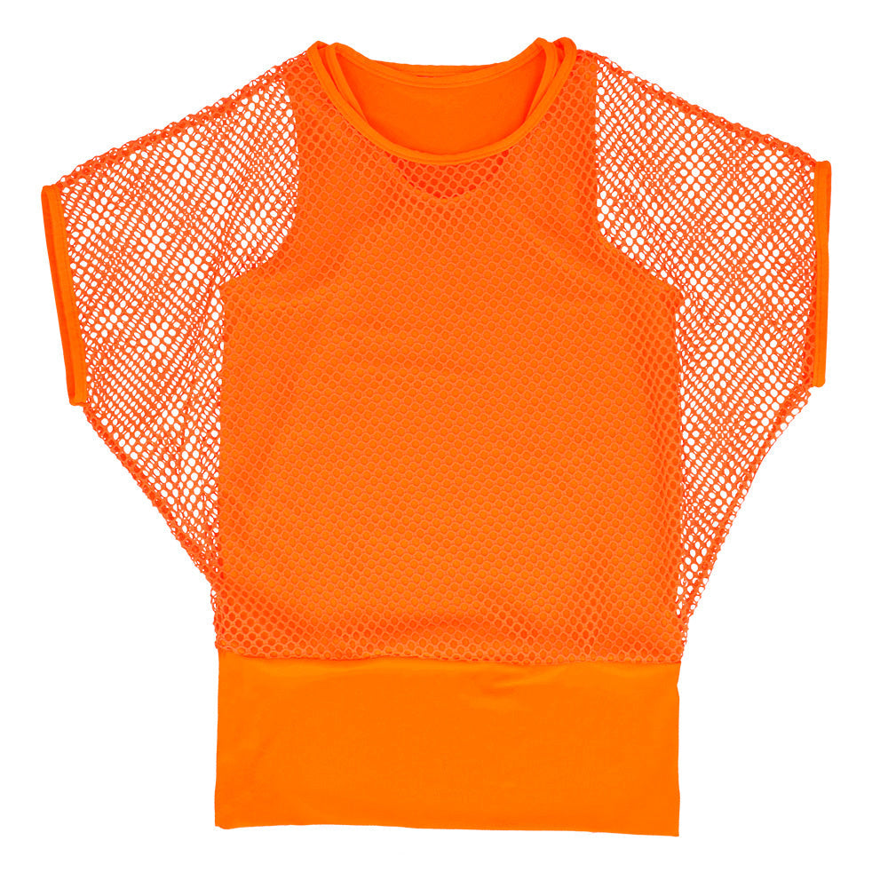 Deze Neonoranje Visnet Top voor dames (M/L) is gemaakt voor vrouwen die niet opgaan in de massa. Fel, opvallend en perfect voor Koningsdag of een festival waar de muziek én jouw outfit knallen.