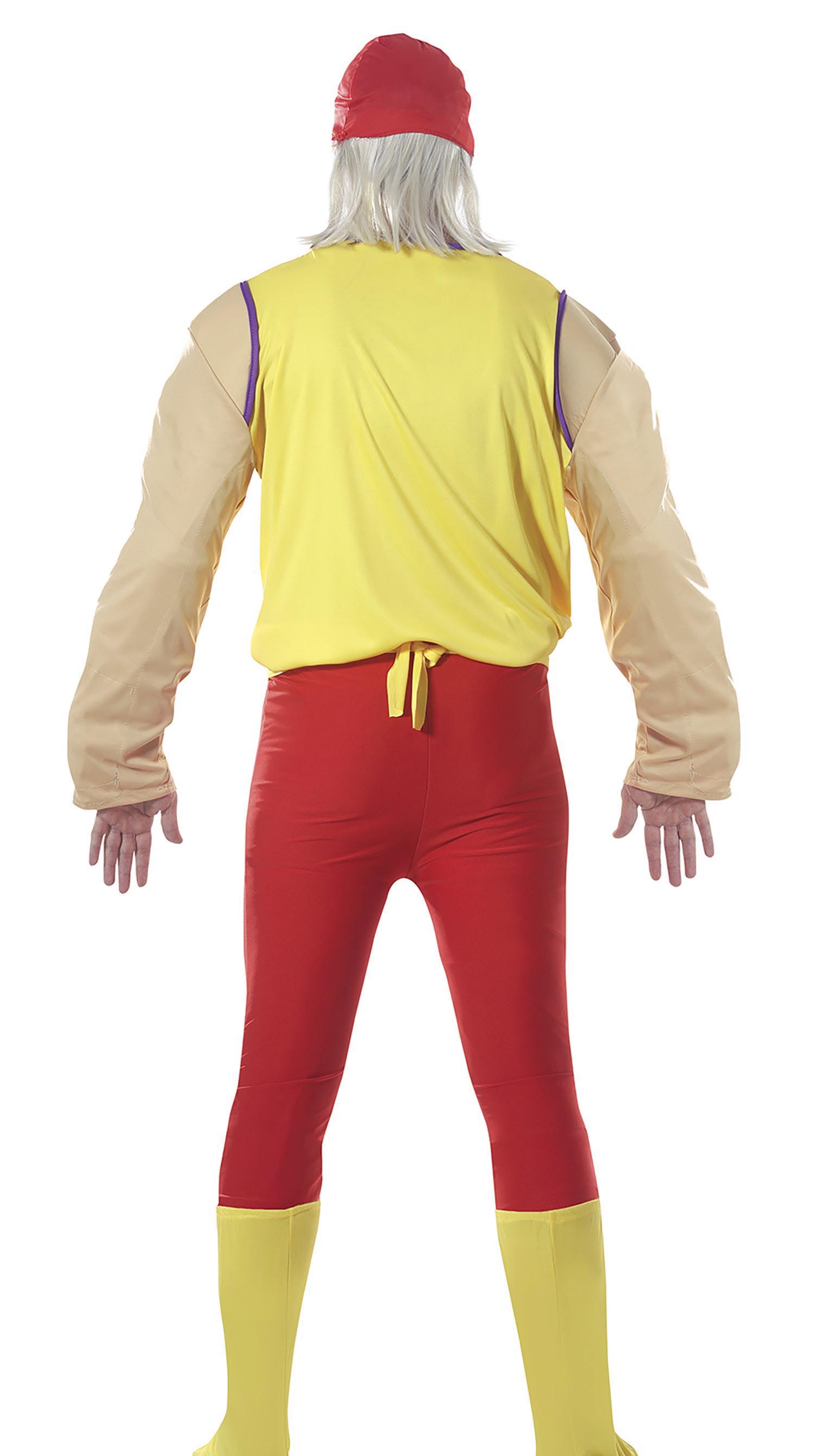 Worstelaar Kostuum Heren – Geel/Rood Hulk Parodie Jumpsuit met Kap
